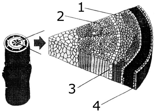 3. (COVEST) Faça a correlação entre as partes de um caule, numeradas de 1 a 4, na figura abaixo, com suas respectivas denominações e funções.