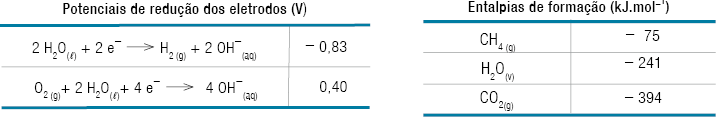 Calcule a força eletromotriz, em volts, da célula a combustível e a variação de entalpia, em kJ, da reação de obtenção do hidrogênio.