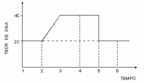 3. (UFSCar-2002) O gráfico mostra a variação da quantidade de DNA de uma célula somática durante as diversas fases de sua vida.