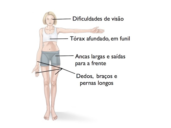 A Síndrome de Marfan é expressa por um par de alelos, e condiciona diversas alterações no portador, como aracnodactilia (dedos alongados), defeitos cardíacos (o peito inclusive é afunilado, formando uma depressão no centro) e problemas na formação dos olhos.