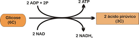 1. Glicólise: processo anaeróbico que ocorre no citoplasma da célula. Saldo Final: 2 ATPs e 1 NADH.