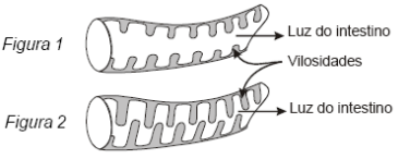 1. (UFRJ-2006) A Figura 1 a seguir mostra as vilosidades do intestino de uma serpente após um longo período de jejum, enquanto a Figura 2 mostra a mesma região minutos após a ingestão de alimentos.