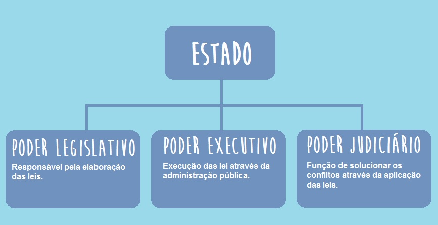 - Divisão do poder político: Para garantir a democracia, o poder político não fica centralizado nas mãos de um único governante. Por esse motivo há três poderes independentes e diversos que trabalham para fazer o Estado andar em Harmonia cívica. Veja abaixo:
