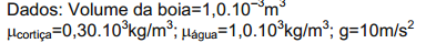 1. Uma boia de cortiça está totalmente submersa na água de uma piscina, presa por um fio ideal, conforme ilustra a figura: