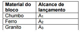 3. (UERJ 2013) Tres blocos de mesmo volume, mas de materiais e de massas difernetes, são lançados obliquamente para o alto, de um mesmo ponto do solo, na mesma direção e sentido e com a mesma velocidade.
