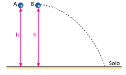 1. De uma mesma altura h e no mesmo instante t0 = 0, uma bola A é abandonada a partir do repouso e outra bola, B, é lançada horizontalmente.