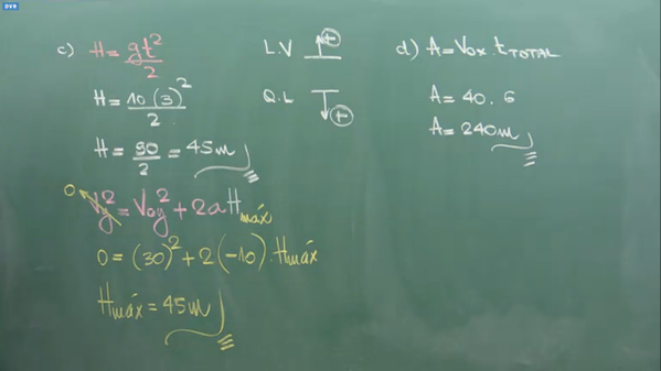 a) a intensidade da velocidade V do corpo ao passar pelo vértice do arco de parábola;