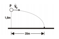 3. (UNICAMP – 2ª Fase) De um ponto PM, a uma altura de 1,8m, lançou-se horizontalmente uma bomba de gás lacrimogêneo que atingiu os pés de um professor universitário a 20m de distância, como indica a figura.