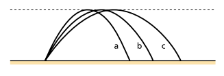 Sejam “t” o tempo de permanência da bola no ar, “Vv” a componente vertical da velocidade inicial da bola e “Vh” a componente horizontal da velocidade inicial. Em relação a essas três grandezas físicas e considerando as três trajetórias a, b e c anteriores, livres da resistência do ar, pode-se concluir que: