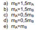 t=0 e a velocidade do corpo A varia em função do tempo segundo o diagrama dado. Desprezando o atrito e admitindo g=10m/s2, a relação entre as massas de A (mA) e de B (mB) é: