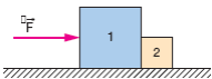 4. O bloco 1, de 4kg, e o bloco 2, de 1kg, representados na figura, estão justapostos e apoiados sobre uma superfície plana e horizontal. Eles são acelerados pela força horizontal F, de módulo igual a 10N, aplicada ao bloco 1 e passam a deslizar sobre