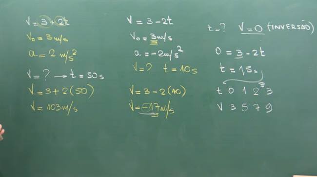 2. Consideremos um móvel, em movimento uniformemente variado, cuja velocidade varia com o tempo, conforme a tabela a seguir.