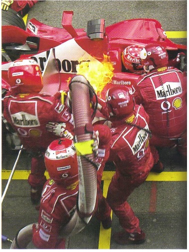 Quando um carro de Fórmula 1 para nos boxes para abastecer, a diferença de potencial entre o carro e o piso é da ordem de 30 kV (a rede da sua casa provavelmente é de 110 V e já dá um choque brabo) e a resistência de cada pneu é de cerca de 100 GΩ (1 G = 100.000.000). O tempo necessário para aproximar o bico da mangueira de combustível com segurança é de 9,4s, uma espera que seria inaceitável durante uma corrida; por isso, a borracha dos pneus dos carros de corrida é misturada com um material condutor (por exemplo, negro de fumo, uma forma pura do carvão) para diminuir a resistência do pneu, e, assim, reduzir o tempo de descarga.