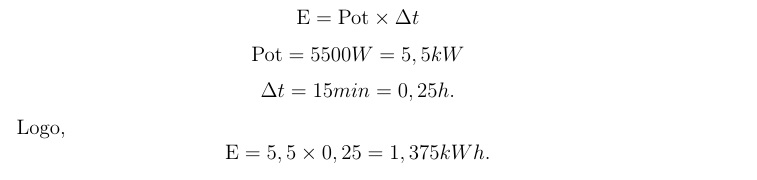 Para sabermos, por exemplo, o consumo de energia elétrica de um chuveiro de 5500 W ligado durante 15 minutos, basta fazermos: