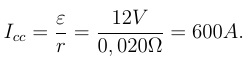 A corrente de curto-circuito para baterias típicas de 12 V e resistência interna de 0,020 Ω é: