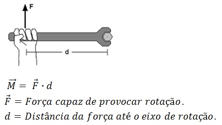 Toda vez que uma força tem o poder de provocar uma rotação em um corpo, associamos ela a uma grandeza física chamada de Momento de uma força ou Torque. Momento de uma força é o produto da força pela distância do ponto onde a força foi aplicada até o eixo de rotação, chamado também de braço de alavanca.