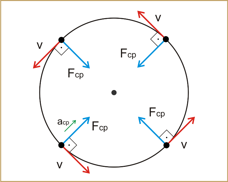 Para o corpo conseguir descrever uma trajetória circular, o principio fundamental da dinâmica garante que devemos ter uma resultante de forças que aponte para o centro. Já que temos uma resultante, teremos então uma aceleração e é ela a responsável por mudar a direção do vetor velocidade. Essa aceleração é chamada aceleração centrípeta.