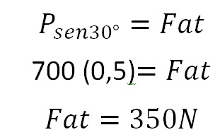 Se o bloco tem peso de 700N, a menor força de atrito capaz de manter o bloco em equilíbrio sobre o plano é