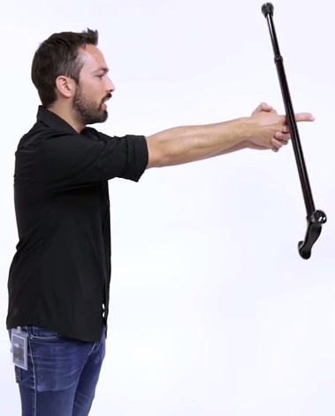 Tente isso em casa: peça para alguém segurar uma vassoura, ou qualquer objeto similar, horizontalmente e coloque seus dois dedos indicadores juntos em baixo do centro de massa do objeto. Desse jeito: