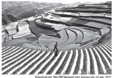 Na imagem, visualiza-se um método de cultivo e as transformações provocadas no espaço geográfico. O objetivo imediato da técnica agrícola utilizada é