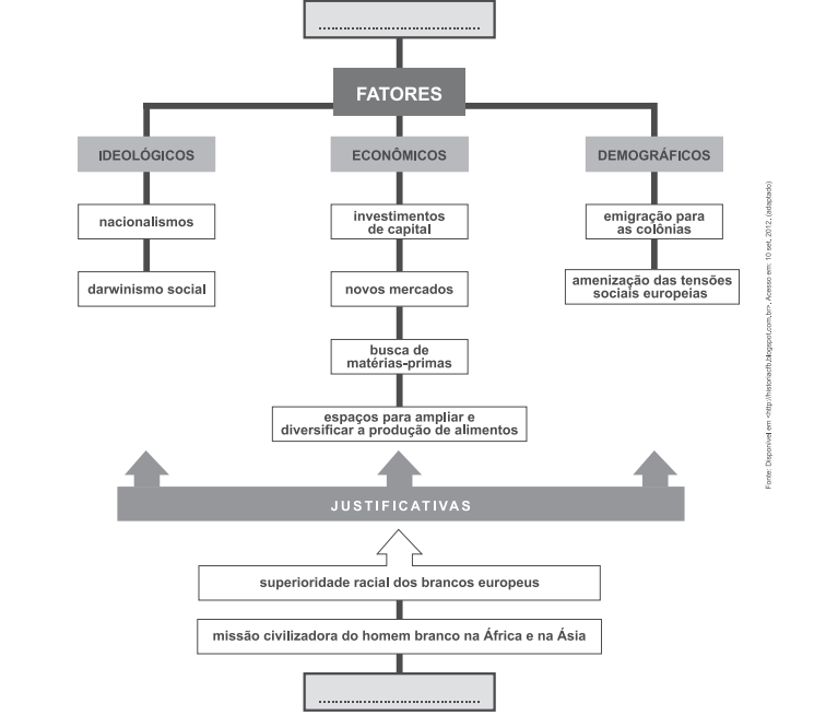Completam o quadro superior e inferior do esquema histórico, respectivamente, os seguintes conceitos: