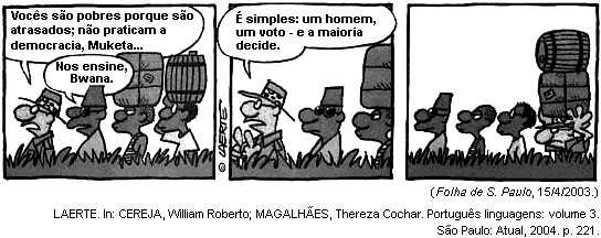 As tiras são um importante instrumento linguístico em que a linguagem verbal e a não verbal combinam-se na construção de um recurso comunicativo humorístico e, às vezes, crítico da realidade. Nesse sentido, a tira citada é pertinente para se fazer uma leitura