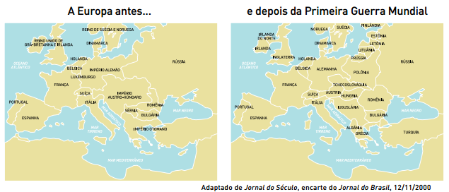 A Primeira Guerra Mundial provocou uma reorganização político territorial da Europa, como se observa nos mapas. Duas ideias orientaram essa reorganização: a do Estado-nação e, no caso da fronteira russa, a do cordão sanitário.