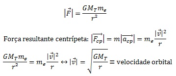 Se você já viu algum vídeo da Estação Espacial Internacional ou de alguma missão do ônibus espacial, você sabe que os astronautas levitam enquanto orbitam a Terra. Por que isso acontece? Será porque a força gravitacional sobre eles é zero no espaço? (Ou quase zero?) A verdade é que a intensidade da força de atração gravitacional é ligeiramente menor do que é na superfície da Terra. Então como eles conseguem levitar? Bem, eles não estão levitando… Eles estão caindo junto com a estação espacial! A força de atração gravitacional faz o papel da resultante centrípeta discutida em Cinemática Vetorial. Assim,