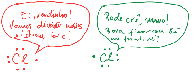 “Ei, verdinho! Vamos dividir nossos elétron, bro!”e “Pode crê, mano! Bora ficar com 8e- no final, né?”