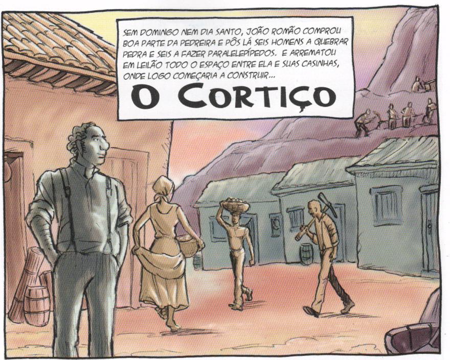 “O cortiço” narra a vida de um grupo de pessoas, que habitam um cortiço e a condição de vida e subsistência dos moradores. Para enfatizar o modo degradante que esses viviam, é muito comum nas obras naturalistas uma animalização do ser humano. Além disso, o autor destaca uma variedade de personalidades que compõem o cenário, como trabalhadores, malandros, lavadeiras, prostitutas e homossexuais.