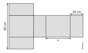A figura mostra a planificação de uma caixa que tem a forma de um paralelepípedo retângulo.