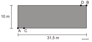 7. O proprietário de um terreno retangular medindo 10 m por 31,5 m deseja instalar lâmpadas nos pontos C e D, conforme ilustrado na figura: