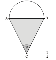 5. O segmento AB é o diâmetro de um semicírculo e a base de um triângulo isósceles ABC, conforme a figura abaixo.
