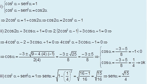 Sabe-se, também, que 2cos(2α) + 3cosα + 1 = 0.