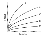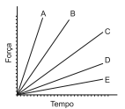 Qual gráfico expressa as intensidades das forças que a Terra exerce sobre cada satélite em função do tempo?
