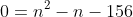 . Logo, n + 12 = 0 ⇒ n = -12 ou n – 13 = 0 ⇒ n = 13. Como n é um número natural, n = 13.