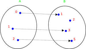 Perceba que a Im(f) = {1,3,5} e cada um desses elementos está relacionado com apenas um elemento do domínio.