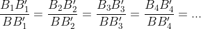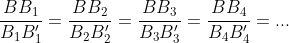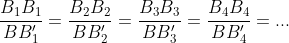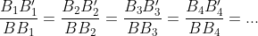 Os triângulos BB1B1′, BB2B2′, BB3B3′, etc. são todos semelhantes entre si pois possuem os três ângulos internos iguais. Assim, podemos observar que fixado o ângulo b: