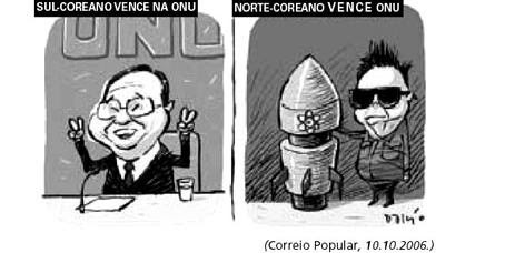 No primeiro quadrinho, o verbo intransitivo vencer acompanha a preposição ‘na’ (em+a), dando a ideia de expressar o lugar onde o personagem venceu. Já no segundo quadrinho, o verbo transitivo vencer estabelece o valor semântico de superação, de criar uma proposta/projeto melhor do que a ONU.