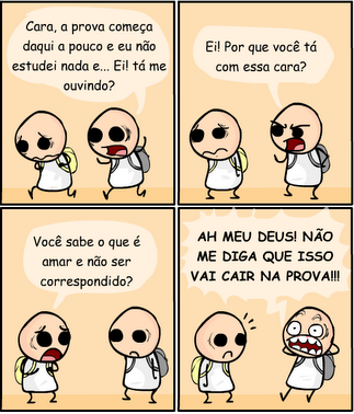 Para analisar seu conteúdo nas provas, alguns vestibulares podem cobrar textos, charges ou tirinhas da atualidade e pedir para relacioná-las com alguma escola literária. O vestibular da Unifesp já fez isso! Dá uma olhadinha na tirinha abaixo: