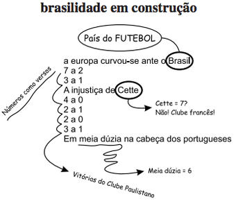O poema de Oswald de Andrade remonta à ideia de que a brasilidade está relacionada ao futebol. Quanto à questão da identidade nacional, as anotações em torno dos versos constituem