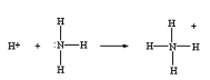 O exemplo mais simples de um ácido de Lewis é um proton, H + o qual aceita um par de elétrons quando ele se liga à molécula de amônia para formar um íon amônio: