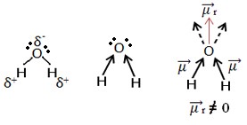 Para exemplificar a representação dos vetores momento de dipolo com a molécula de água. O vetor possui a direção do elemento menos eletronegativo para o elemento mais eletronegativo. Uma vez que esses vetores não se anulam, há a formação de um vetor momento de dipolo resultante, que identifica a presença de polaridade na molécula.