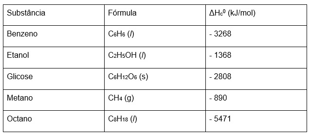 1. (Enem 2011) Um dos problemas dos combustíveis que contêm carbono é que sua queima produz dióxido de carbono. Portanto, uma característica importante, ao se escolher um combustível, é analisar seu calor de combustão (Δhc0), definido como a energia liberada na queima completa de um mol de combustível no estado padrão. O quadro seguinte relaciona algumas substâncias que contêm carbono e seu ΔHc0.