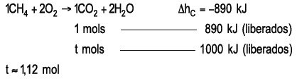 Assumindo como uma mesma quantidade de energia liberada (1000kJ), teremos: