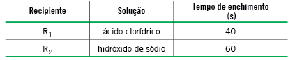 Admita que as soluções depositadas em R1 e R2 até o instante t = 40 s tenham sido misturadas em um novo recipiente, formando uma solução neutra.