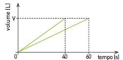 O volume de solução aquosa de hidróxido de sódio depositado em R2 em 40 s é determinado a partir de uma relação de proporcionalidade, pois sabe-se que em 60 s, o volume equivale a V: