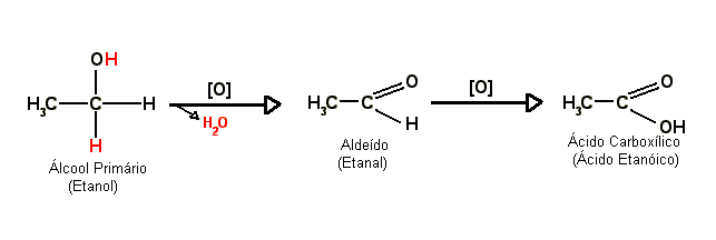 Quando esses alcoóis são oxidados, formam aldeídos, que, por sua vez, podem ser oxidados a ácidos carboxílicos. É o que ocorre com o álcool etanoico – isso mesmo, o álcool do vinho.