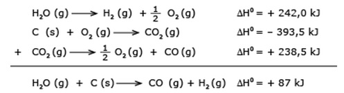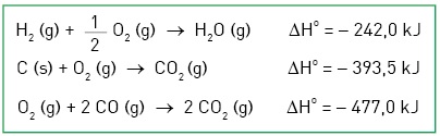 Na determinação da variação de entalpia dessa reação química, são consideradas as seguintes equações termoquímicas, a 25 °C e 1 atm: