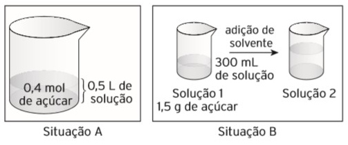 I.Na situação A, a concentração molar obtida é igual a 0,8 mol/L